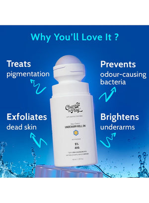 Chemist at Play UnderArm Roll On with Lactic and Mandelic Acid, Removes odour, Whitens and Brightens Skin, Kills Bacteria, Exfoliates Underarm, Long lasting Aqua Fragrance, For Women and Men, 40ml