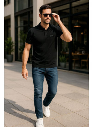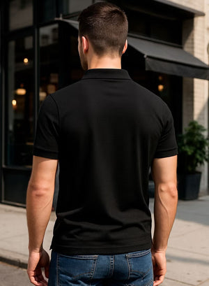 Men’s Stretchable Cotton Polo Shirt – Short Sleeves, Breathable, Black – Perfect for Office & Casual Outings