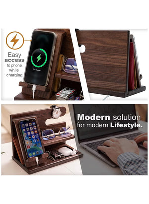 - [Convenient Design] The bracket is easy to assemble. Advanced design, multiple compartments, compact. Compatible with various smartphones. The booth also has compartments for storing wallets, glasses, watches, bracelets, keys, stationery, etc. This stand will become a noticeable and very practical accessory on your desk or bedside table.