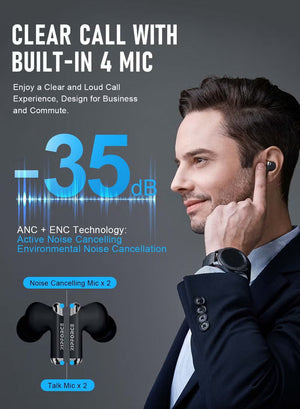ZIPFORCE True Wireless Earbuds, Fully In-Ear Bluetooth 5.3 Headphones 4-Mics ANC + ENC Clear Call, Bluetooth Earbuds Touch Control 40 Playtime, IPX6 Waterproof TWS, Light-Weight Earphones
